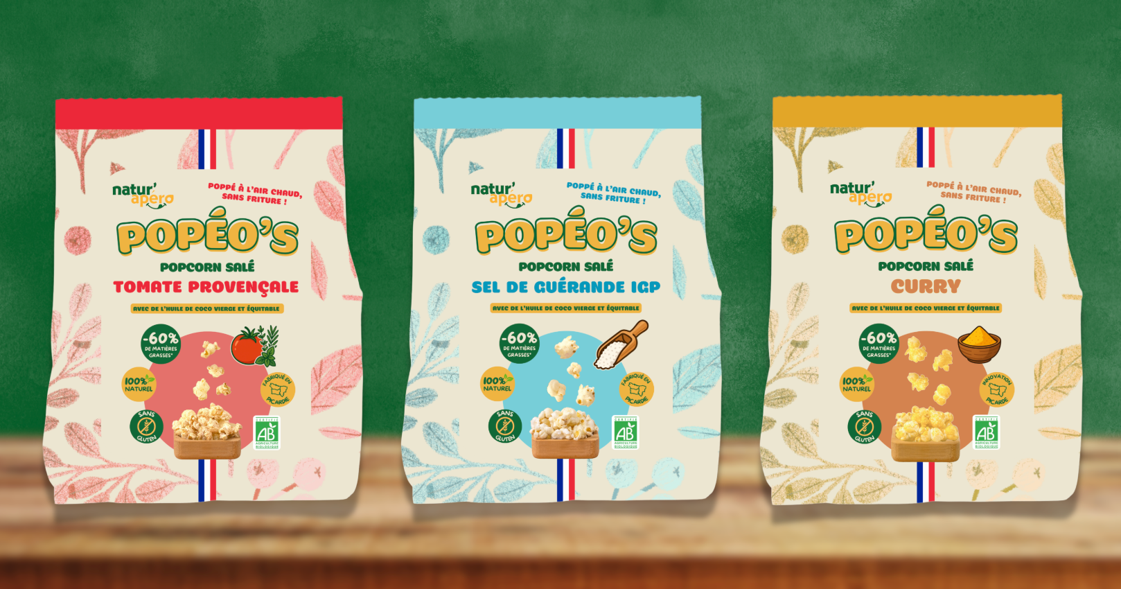 La marque a lancé POPÉO’S, le premier pop-corn apéro de France bio, popé à l’air chaud et fabriqué en France. Une innovation pensée pour réinventer l’apéritif, sans friture et avec une réduction significative des matières grasses par rapport aux popcorns industriels.